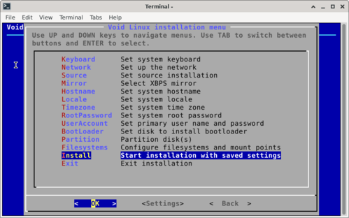 Instalação completa com imagens e configuração básica do Void Linux para deixá-lo funcional como desktop.