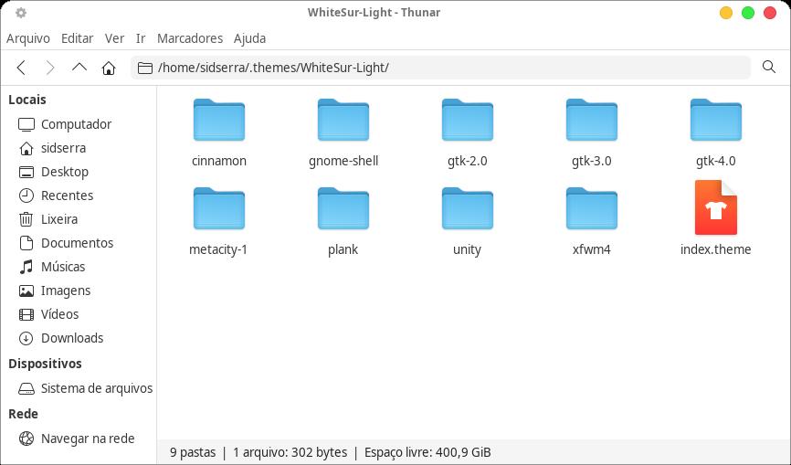 XFCE é que ele não tem muita coisa para configurar em termos de aparência, é como se fosse um gramado pequeno bem cuidado: dá para botar umas flores aqui e ali e são suficientes para tirar a monotonia do verde da grama. Em se tratando de temas, o que melhor se ajusta em termos gerais é o WhiteSur-GTK-Theme que possui as variantes:
