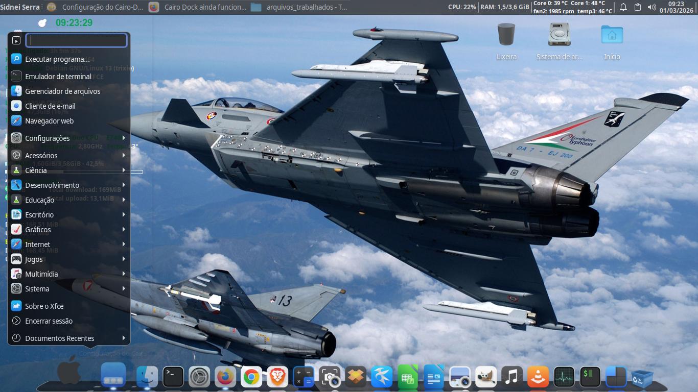 Linux torce o nariz com a ideia de que "Linux é Linux, não é Windows ou Mac", esquecendo estrategicamente da tal "liberdade" que possibilita aos usuários usarem o que bem entenderem nas suas instalações. Parece que, na visão de alguns, ter um desktop funcional e produtivo só vale se usar o sistema "do jeito que ele veio" e não é bem assim.Latte Dock) e outros que "estão quase indo" por falta de atualizações mais recentes, simplesmente pelo fato das DEs estarem embutindo esse recurso ou mesmo por falta de interesse. E, de novo, vem aquela turma do "LNEW - Linux Não É Windows) falando mal das DEs que se "desvirtuam" da proposta original, mesmo que isso leve algumas distribuições a permanecerem obsoletas na instalação, visualmente e na utilização.Cairo Dock, mais uma opção mesmo que não muito atualizada do que podemos ver no MacOS e em extensões do Gnome e também presente em outras DEs só que não tão bem feita.OpenGl (caso a sua máquina permita) ou no modo software; seja como for, é um dock fácil do sistema lidar, com bons recursos mas sem muitas opções extras uma vez que não recebe atualizações há anos e nem por isso deixa de ser funcional. Para instalar no Debian:Atualizando "na marra" o YT-DLP quando começa a dar erro de downloads