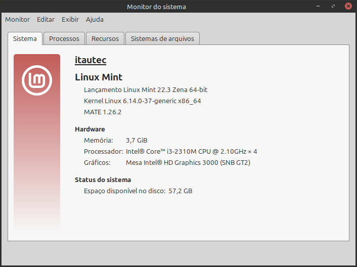 Segue configuração de uma das 4 máquinas (o notebook de 16 anos), depois posto a configuração das outras.