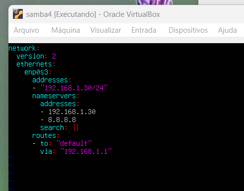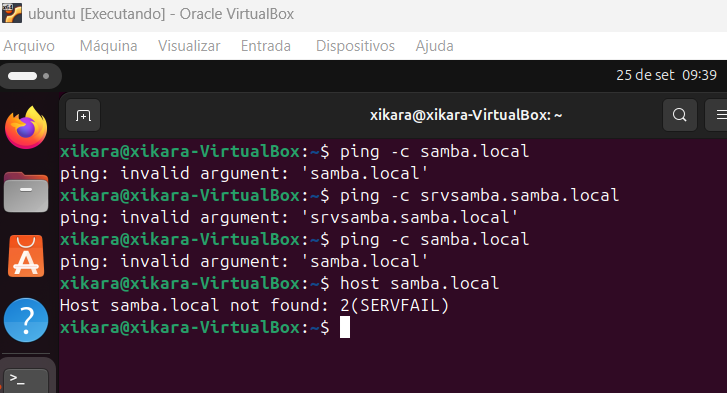 Teste resolução NetBIOS e resposta do servidor Samba.