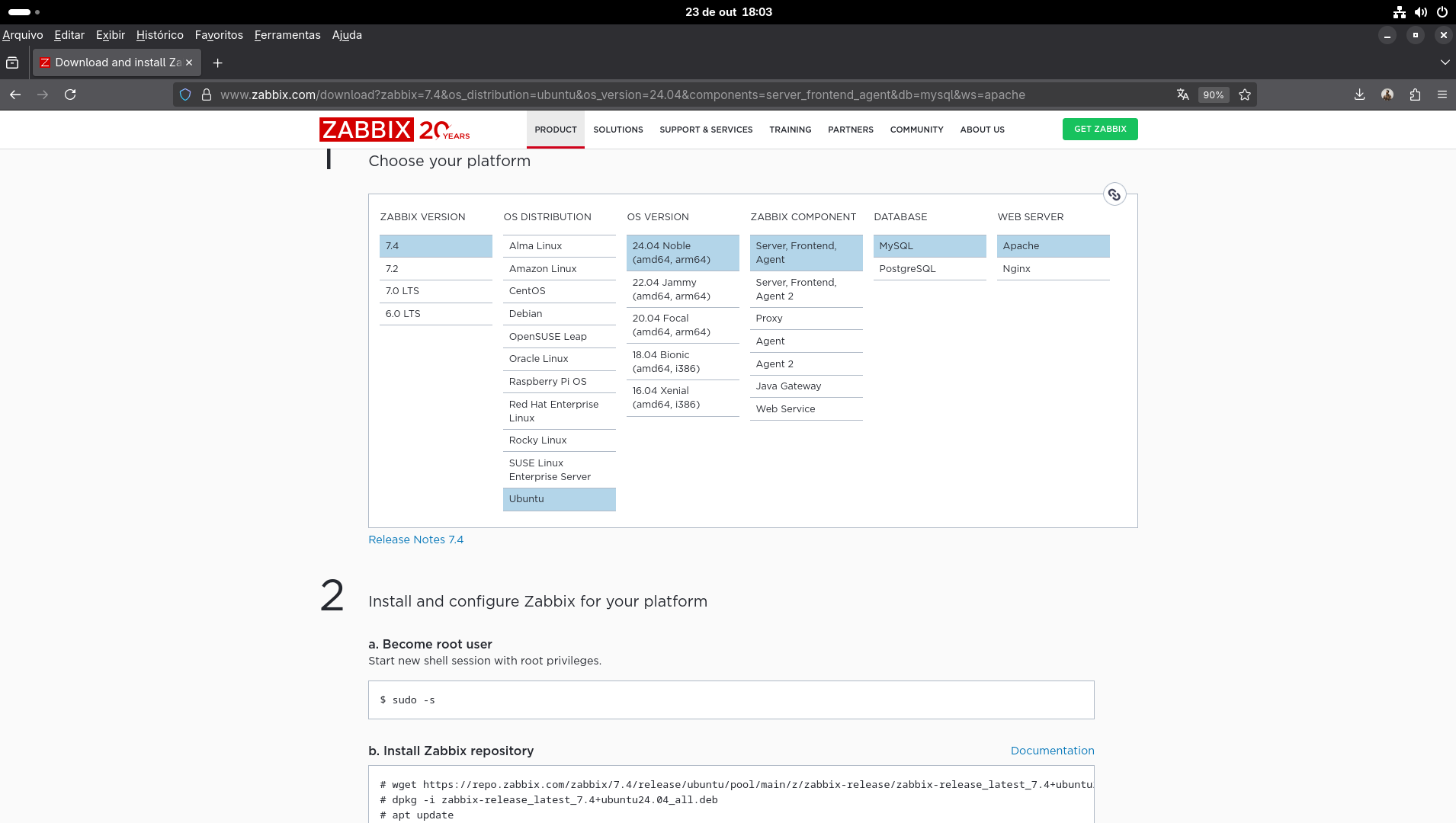 Estou instalando o Zabbix Server em uma nova máquina com Ubuntu Server 25.10, seguindo as instruções do site oficial do Zabbix.