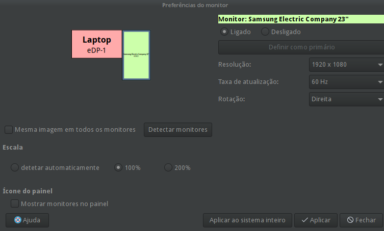 inicialmente, o Monitor-2, com o "ARandR", salvar a configuração e, em seguida, no app Monitor, do MATE, tinha que